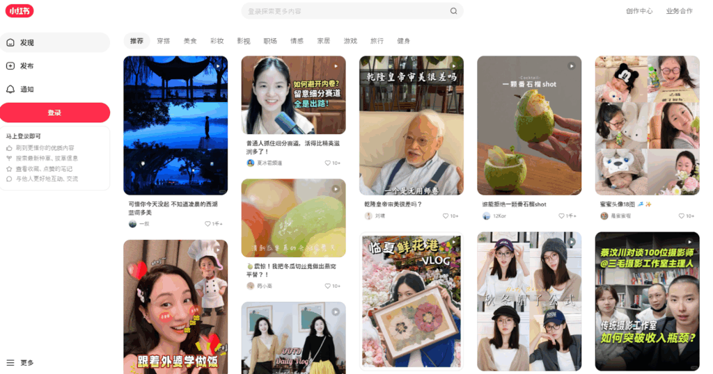 具体的には、Webブラウザから小紅書(RED)にアクセスした場合、トップページに表示される一部の投稿や、特定のハッシュタグで検索した結果などを閲覧できることがあります。