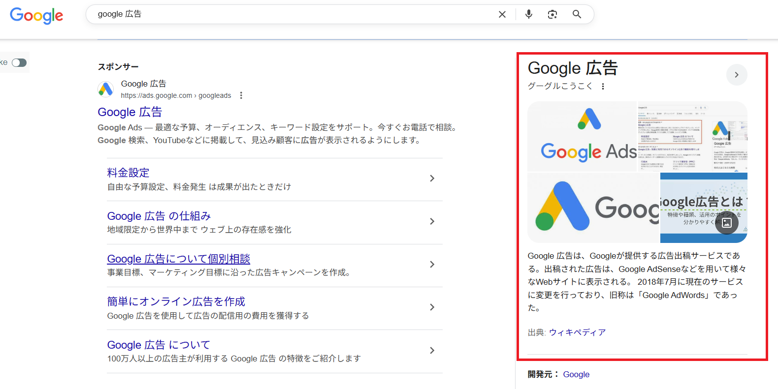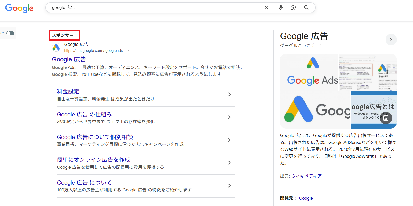 | 広告枠 | 有料検索(リスティング広告)として表示される |