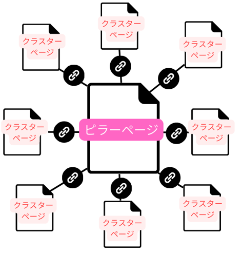 クラスターコンテンツは、ピラーコンテンツへのリンクだけでなく、それぞれのクラスター内で独立した検索意図に応え、ユーザーにとって価値ある情報を提供することで、検索エンジンからの評価を獲得することを目指します。