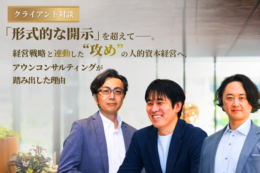 株式会社CAQNAL様のコラムにて、弊社取締役 高橋重行 の対談記事「【カクナル クライアント対談vol.1】「形式的な開示」を超えて。経営戦略と連動した“攻め”の人的資本経営へ、アウンコンサルティングが踏み出した理由」が掲載されました。