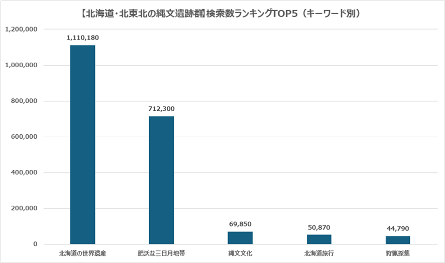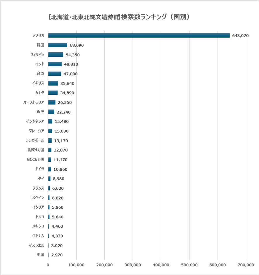 2位の韓国では、地理的な近接性に加え、自国の先史文化である櫛目文土器文化との関連性や、近年の日本地方都市への観光需要の高まりが検索数に影響を及ぼした可能性があります。