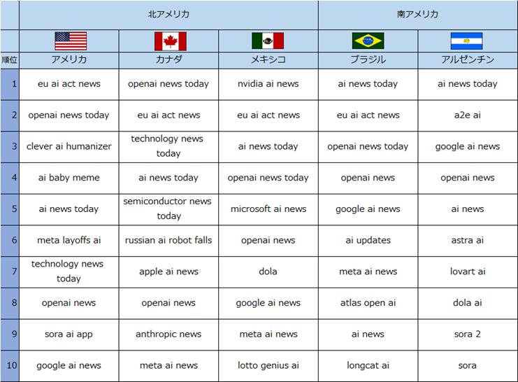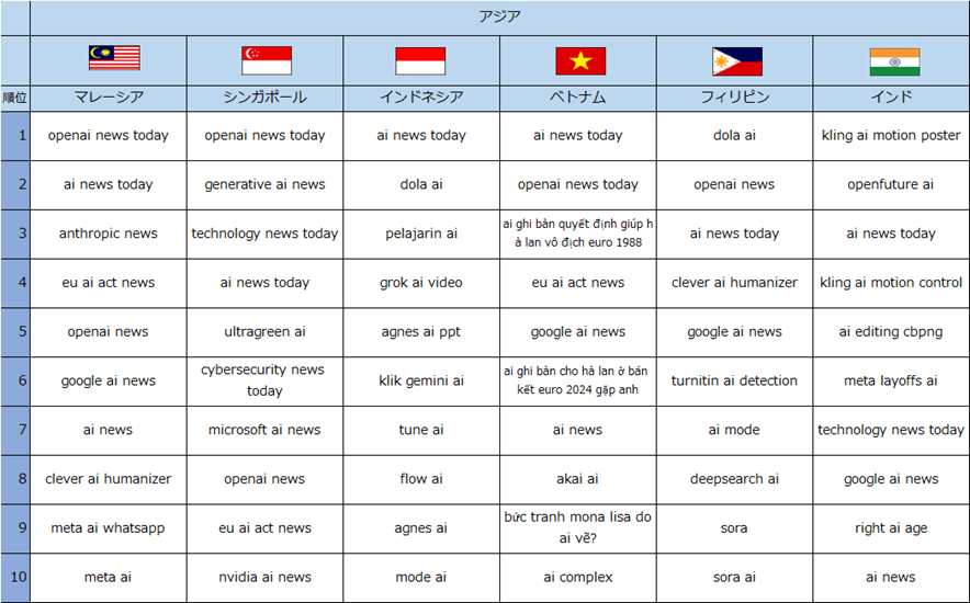 【複数の国・地域でランクインしたAI関連ニュースを検索したキーワード】